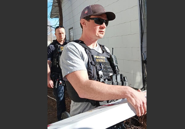 Officer Stroble returned Gabe’s shotgun, ammunition, and ammo pouch. He does not appear happy or friendly. Image courtesy of Gabe Metcalf and Mother.